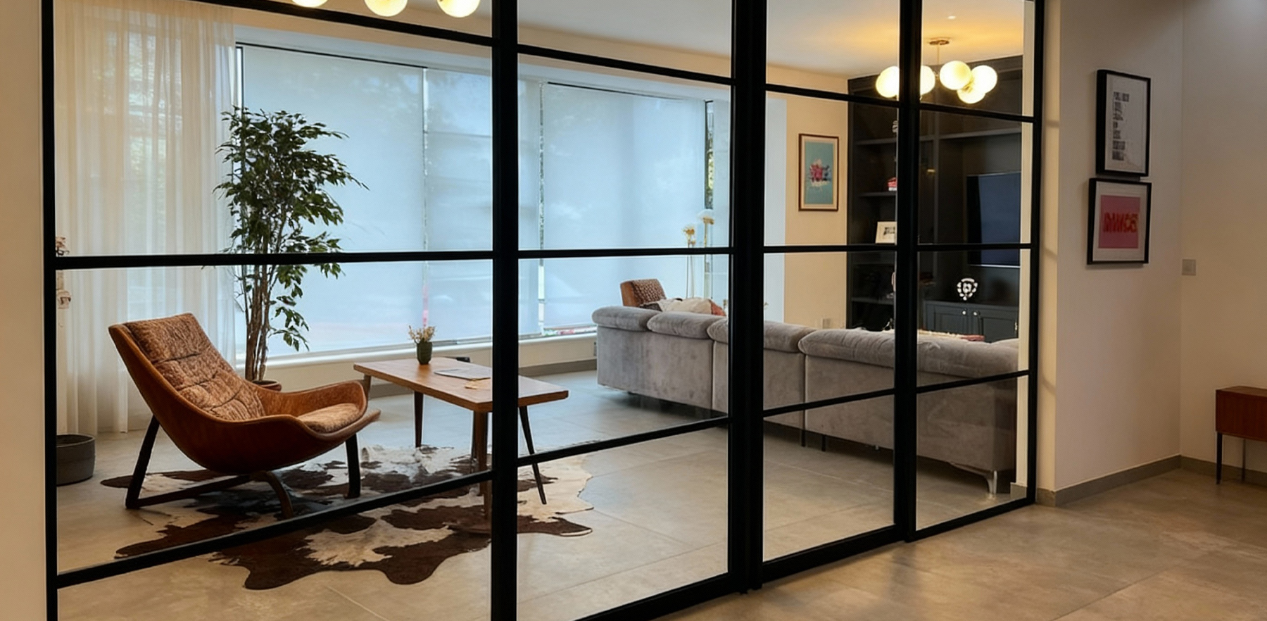 Residential properties: Our internal aluminium doors are ideal for dividing kitchens and living rooms, creating quiet home office spaces, separating lounges, dining rooms and snug areas, and for hallways and landings where you want to let more light flow between floors.